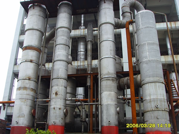 YBJX-降膜强循环污水蒸发器是公司新开发出来的污水处理蒸发器。本设备可以用来处理医药、精细化工、酒精、味精等行业污水。根据被处理污水的成份,进入蒸发器以后,可以分为低浓度水、高浓度水(可选择设计)和浓缩物三种成份分离出来:低浓度水的水的COD有大幅度的下降,进入生化池后大大减小了生化池的负担;高浓度水送入精馏设备进一步分离、回用;浓缩物作可以用来作饲料或废料焚烧。现在公司已经开发出每小时蒸发量为1吨、6吨、12吨、35吨和50吨蒸发器,并在安徽红盛化工有限公司、烟台万润精细化股份有限公司、联邦制药等大型医药、化工企业中成功应用。